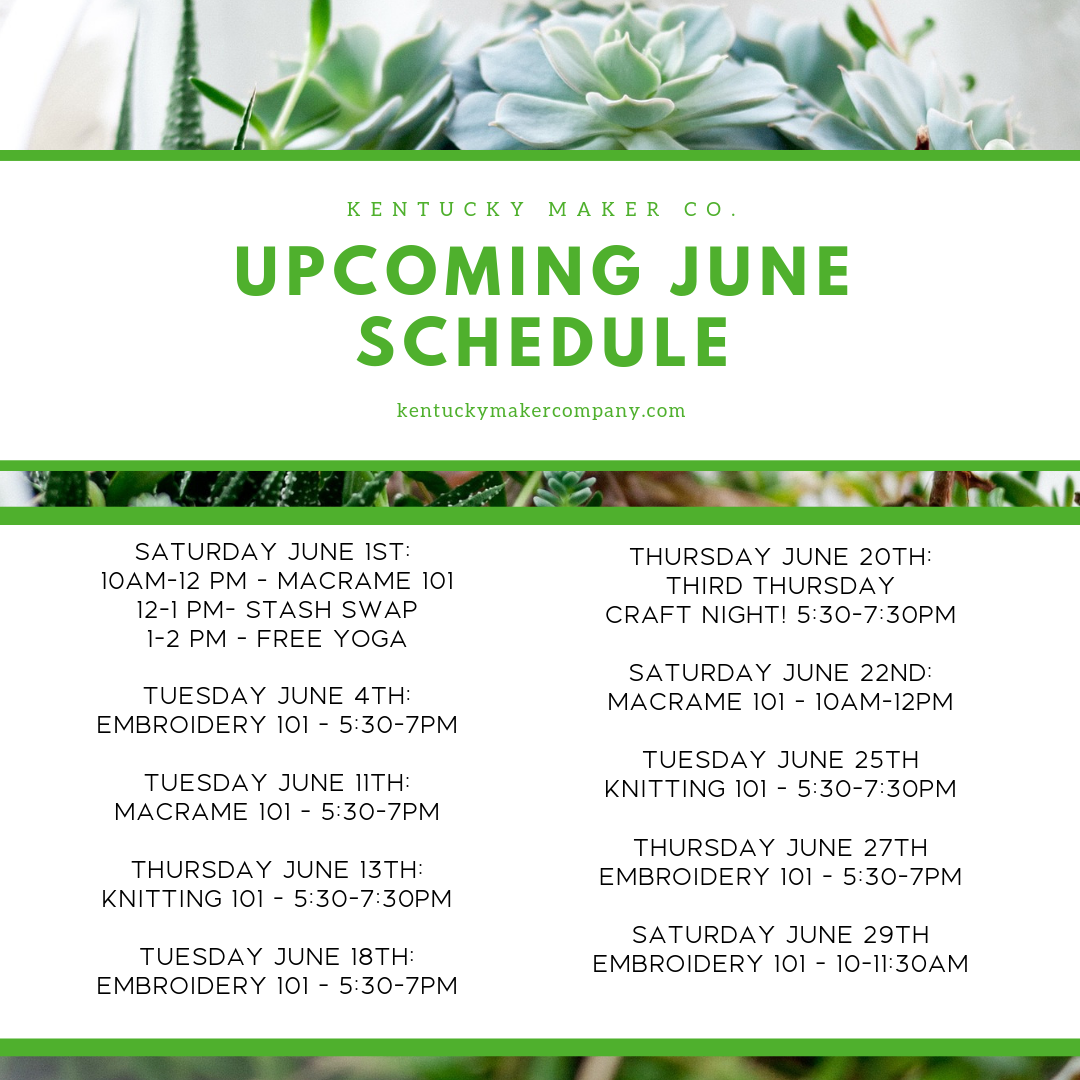 Hi all! Here is a schedule of our upcoming workshops and classes for the month of June! There is also earlybird pricing on them all so get your tix! Go here : http://bit.ly/kmcoevents Also – during the summer – the showroom is open during classes and workshops or by appointment only. See you in class!
